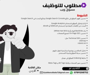 مطلوب مسوق ويب للعمل بدوام جزئي لدى أحد الشركات الخاصة الرائدة في الأردن