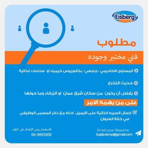 وظائف وفرص عمل لدى لمصنع ايسبيرج في عمان الأردن 23/10/2024